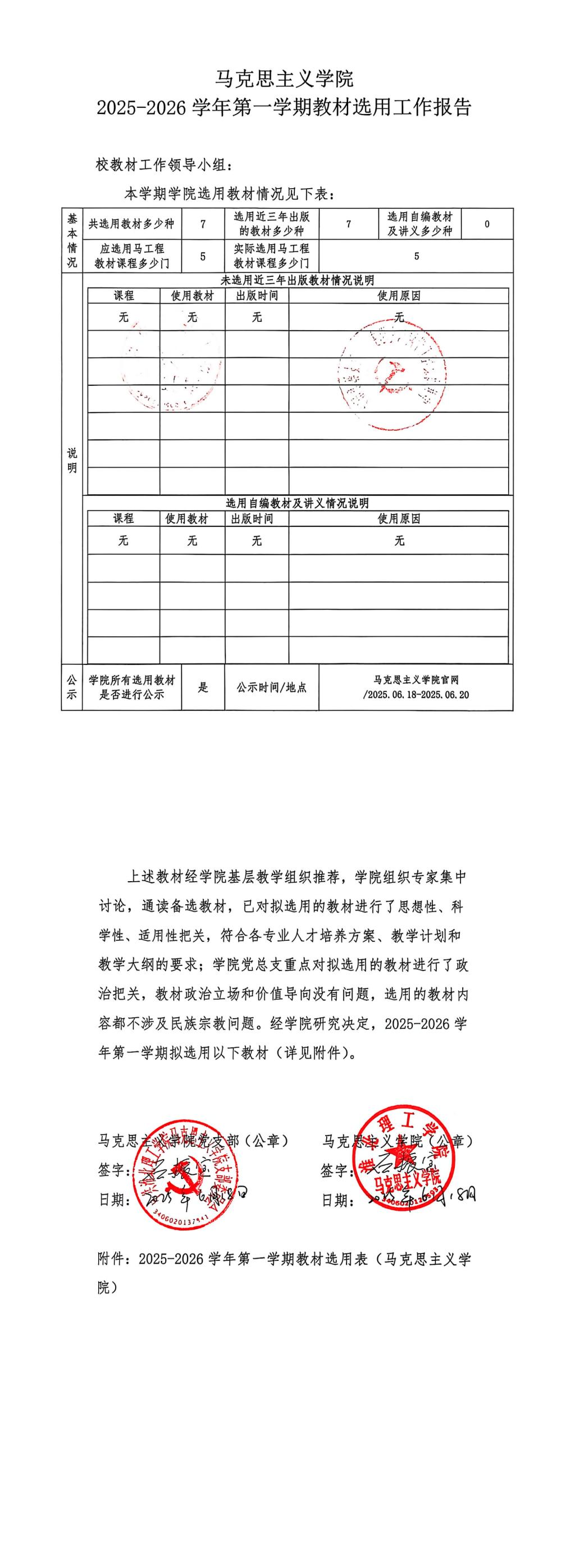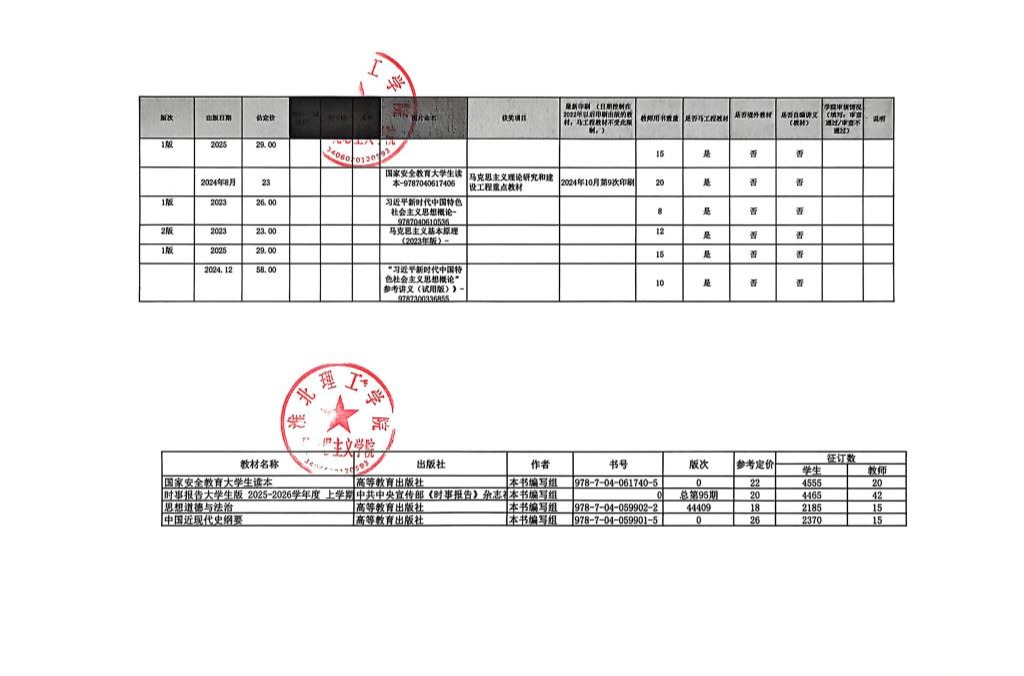 suncitygroup太阳成集团2025-2026学年第一学期教材选用情况公示