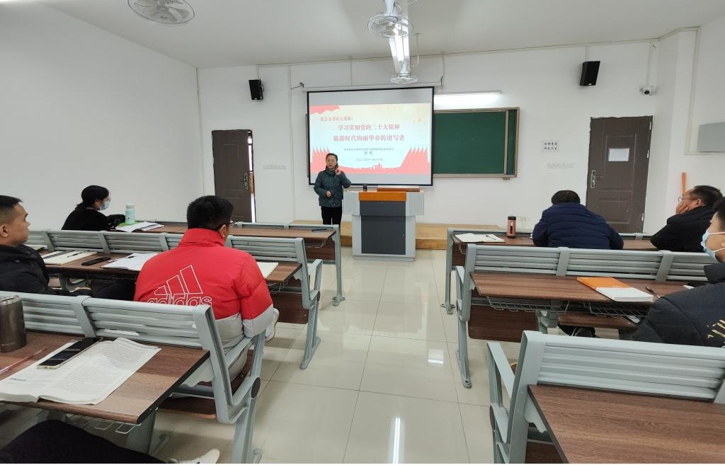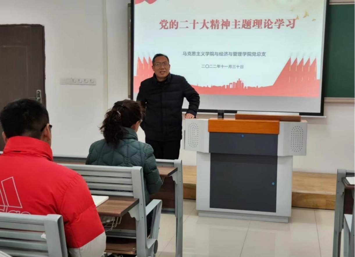 为深入学习宣传贯彻党的二十大精神,切实把思想和行动统一到党的二十大精神上来,引导全体党员干部、教师积极响应时代呼唤,紧密团结在以习近平同志为核心的党中央周围,深刻感悟思想伟力,领悟大会精神。11月30日下午,suncitygroup太阳成集团与经济管理学院党总支组织开展了关于党的二十大精神主题学习活动,由党总支书记吴玲以“做新时代绚丽华章的谱写者”为主题,在二教421为全体教师上了一堂生动且深入的专题党课。