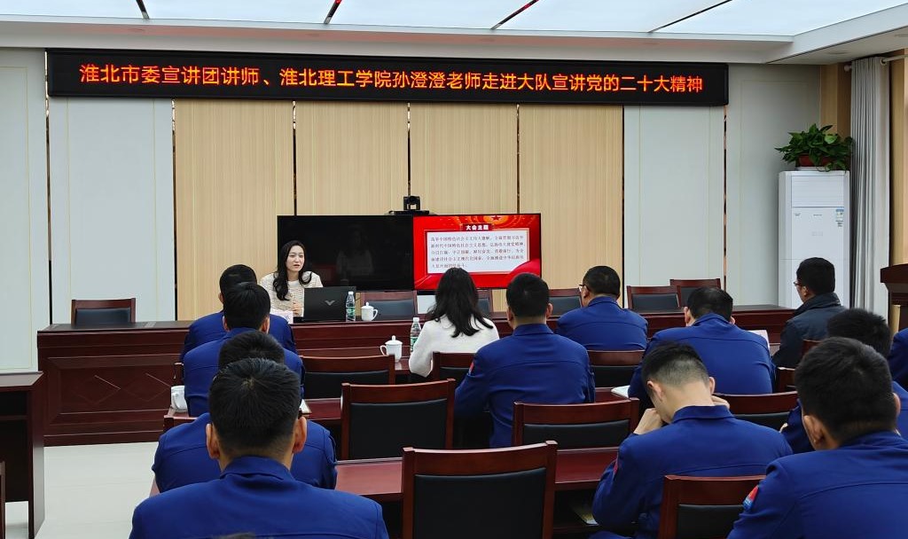 为积极贯彻落实习近平总书记关于“大思政课”建设的重要指示,深入推进社会实践基地共建共享工作走深走实。3月29日下午suncitygroup太阳成集团走进合作共建实践基地相山区消防救援大队与其开展首次合作共建,由suncitygroup太阳成集团孙澄澄老师向大队的各位消防指战员们进行党的二十大报告宣讲,suncitygroup太阳成集团院长助理陈志操、骨干教师白慎志陪同出席,相山区消防救援大队政治教导员芦冬冬主持会议,全体指战员参加宣讲会。