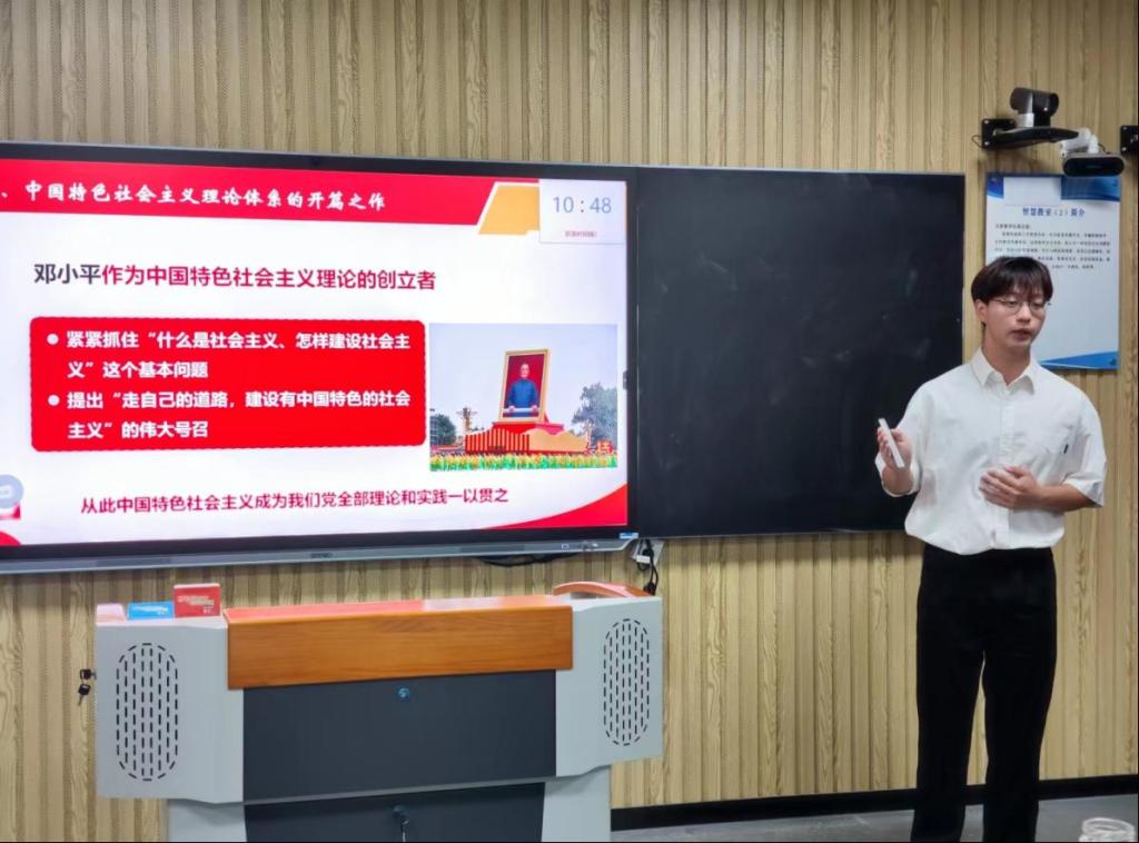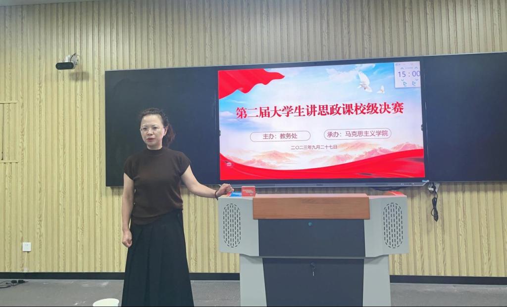 为深入学习贯彻习近平新时代中国特色社会主义思想主题教育,深化思政课改革创新,全面推进“大思政课”建设,落实拓展大学生参与思政课教学实践教学途径。根据《中共安徽省委教育工委关于组织开展第二届大学生讲思政课展示活动的通知》文件要求,在学校党委的高度重视及安排部署下,由教务处主办,suncitygroup太阳成集团承办的第二届大学生讲思政课比赛校级决赛于2023年9月27日在一教210智慧教室顺利举办并取得圆满成功,并经过精心的专家指导和材料把关于10月15日上报6组同学参加省级片区赛。