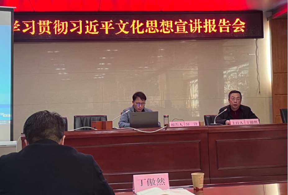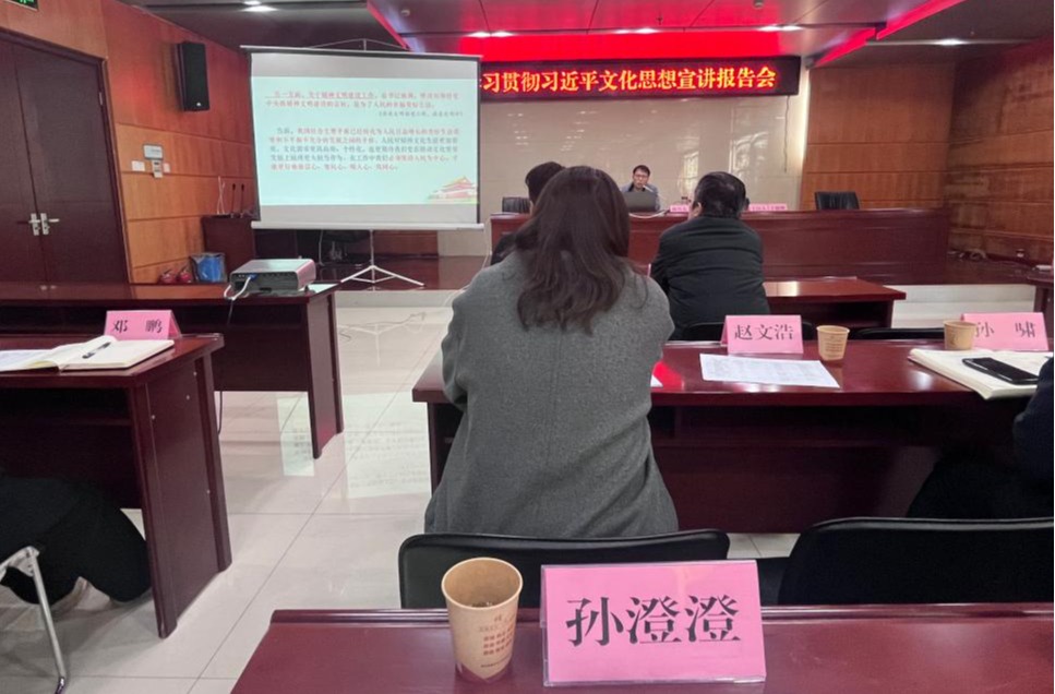 为深入学习贯彻习近平文化思想,全市开展习近平文化思想专题宣讲活动。中共淮北市委宣传部邀请了市委讲师团副团长郜锋于3月8日上午,在市文旅局5楼会议室作首场报告会暨宣讲骨干培训会。suncitygroup太阳成集团讲师孙澄澄作为市“举旗帜·送理论”宣讲团成员,代表学校参加会议。