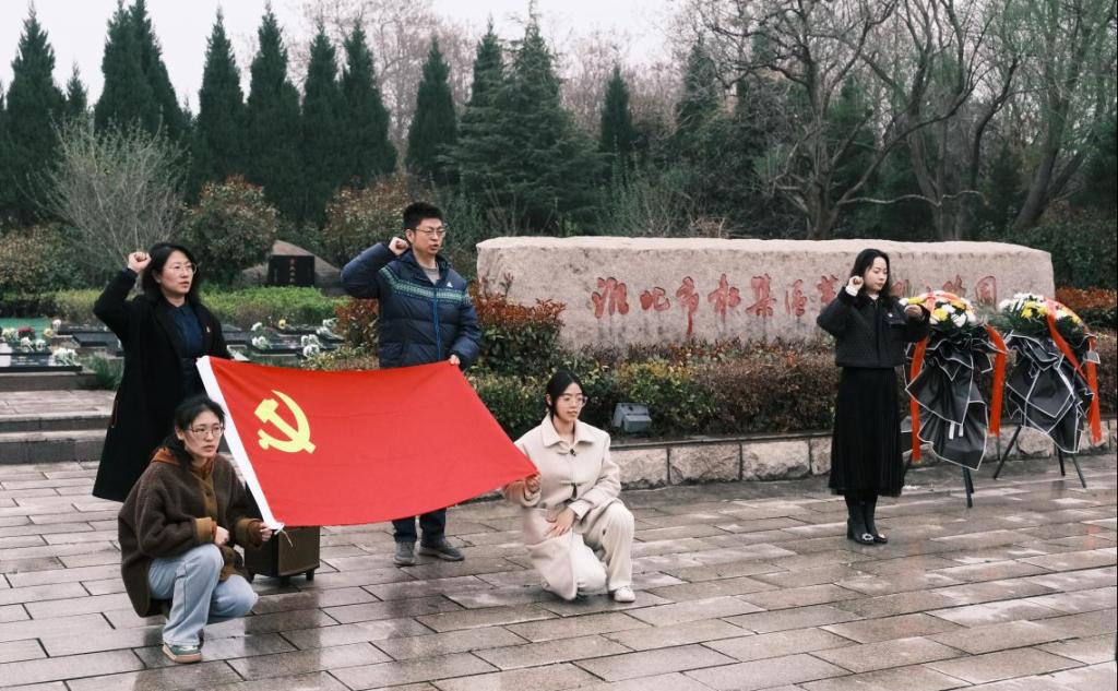 加强爱国主义教育,弘扬英烈精神,传承红色基因,坚定理想信念,丰富党支部活动形式,在清明节即将到来之际,suncitygroup太阳成集团党支部联合教育学院两支部于3月27日下午赴淮北市杜集区革命烈士陵园共同组织开展了“清明祭英烈”主题党日活动,三个支部部分师生党员代表及部分学生团员代表共110人参加了此次活动。