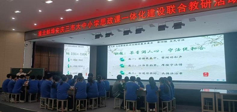 日前,由淮北市教育科学研究所、蚌埠市教育科学研究所及安庆市教育教学教研室联合主办的“淮北蚌埠安庆大中小学思政课一体化建设联合教研活动”在淮北市实验高中成功举办。活动以“传承传统文化,弘扬法治精神”为主题,旨在通过大中小学思政课一体化教研,深化三地教育交流与合作,共同探索大中小学思政课一体化建设新路径。suncitygroup太阳成集团负责人及部分教师参加了此次活动。