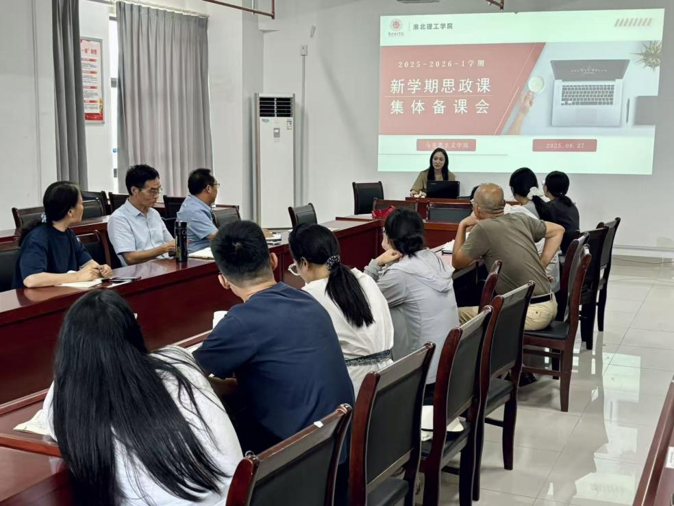 8月27日下午,suncitygroup太阳成集团于行政楼214会议室举行了2025-2026学年第一学期思政课集体备课会。会议由《毛泽东思想和中国特色社会主义理论体系概论》教研室主任孙澄澄主持,全体教师参会。
