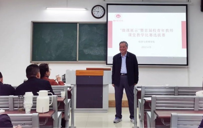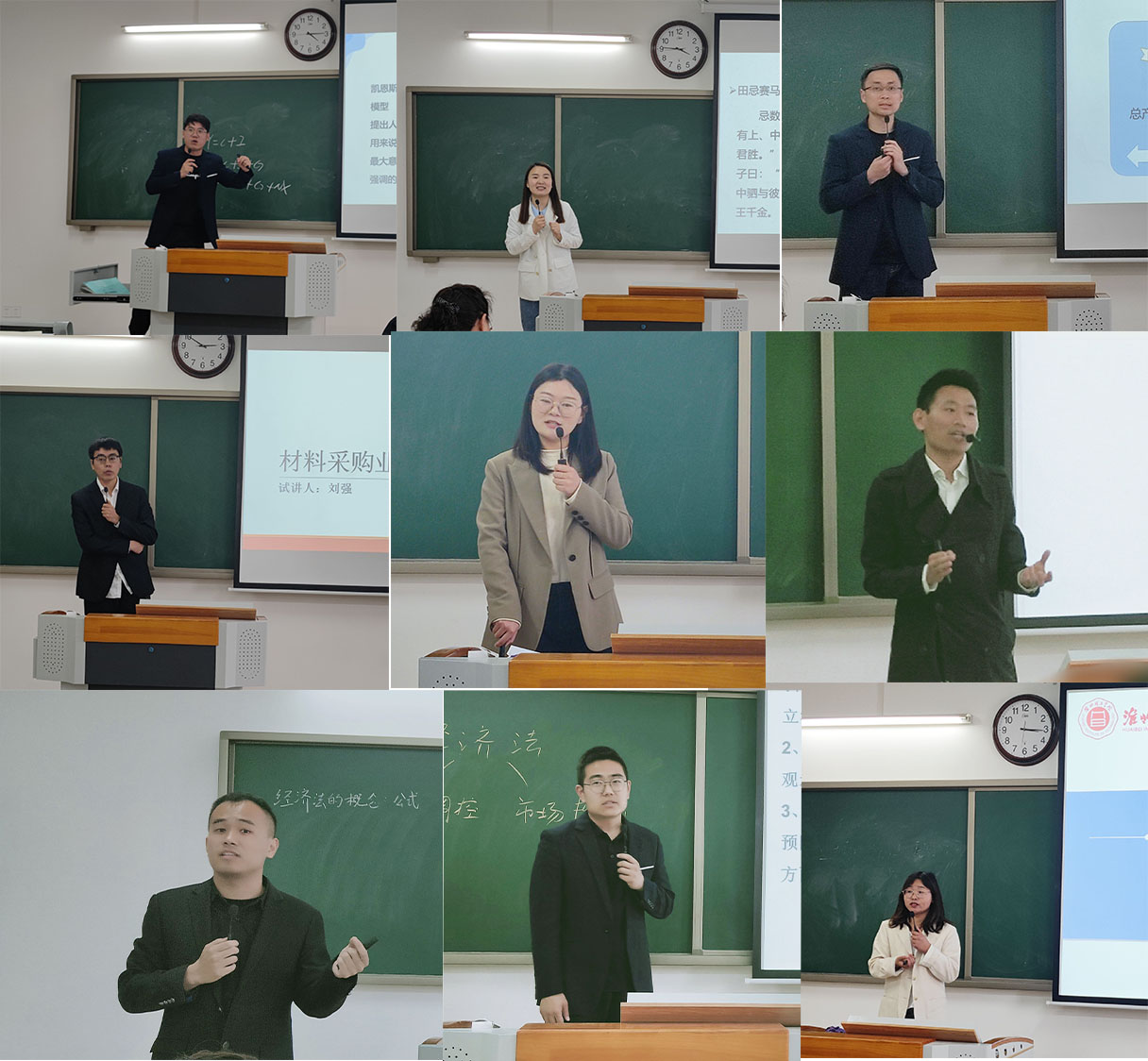 为更好的推动课堂教学质量的提高,全面提升教师教学能力,站稳讲台、打造金课,suncitygroup太阳成集团和经济与管理学院于4月13日下午1点50分在一教215教室组织开展了两种不同形式的教学展示评比活动暨首届青年教师课堂教学比赛的学院选拔赛,suncitygroup太阳成集团采用的“同课异构”比赛方式,经管学院采用微课展示比赛方式。本次活动由吴玲院长主持,两个学院全体教师参与,学校督导专员朱德顺和副校长汪建利坐镇活动现场进行观摩和指导。