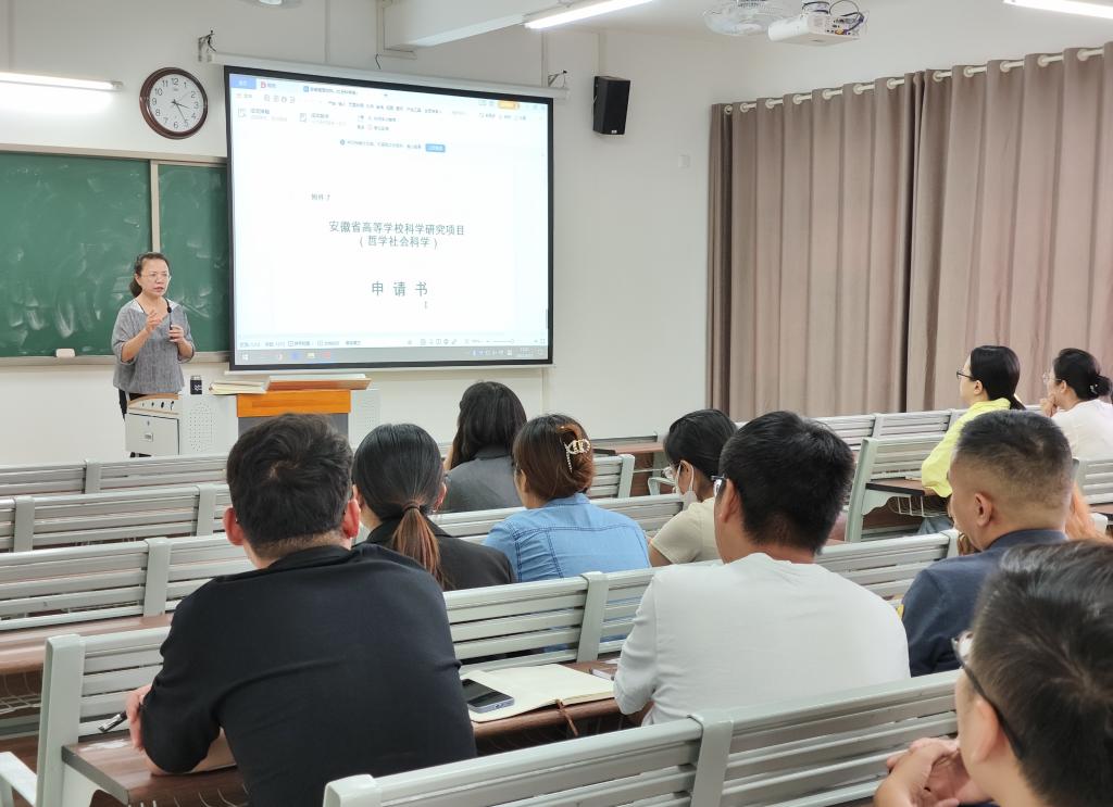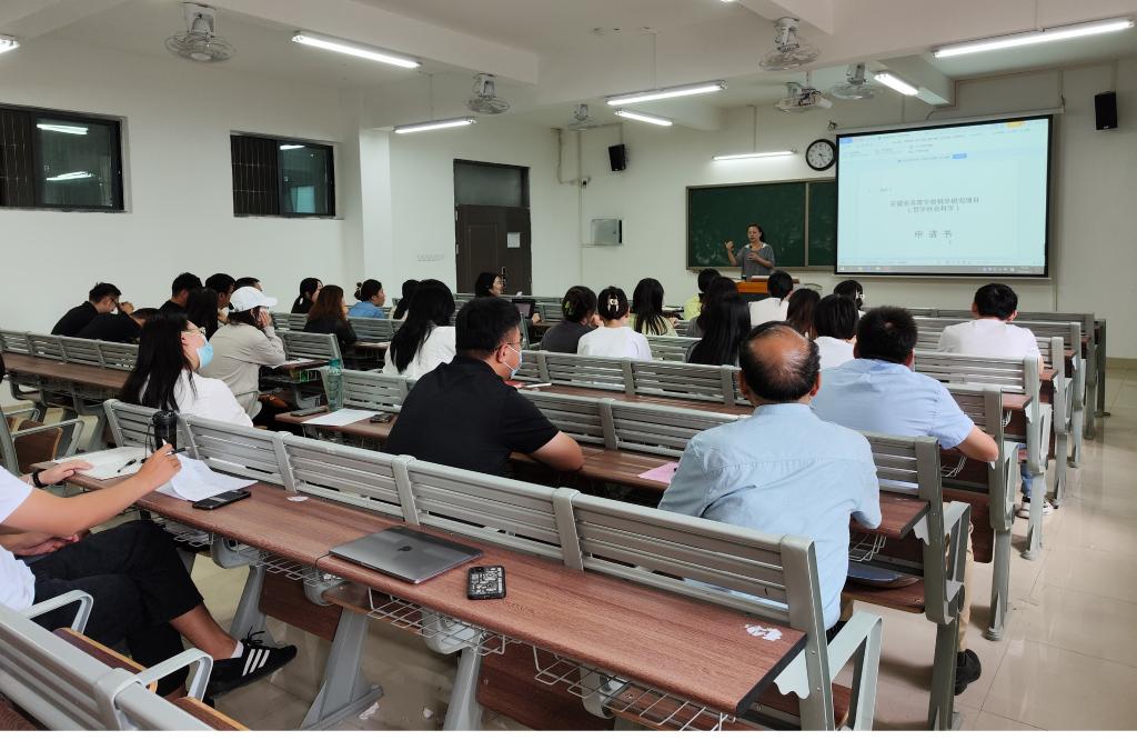 为提升教师科研水平,更快深入了解科研项目申报的变化,确保申报质量,掌握自然科学项目、哲学社会科学项目等申请书的撰写技能,也为了充分调动两院教师申报项目的积极性,suncitygroup太阳成集团和经济管理与建筑工程学院(以下简称两院)于2022年9月21日下午在1号教学楼215教室召开了两院2022年度省级科研项目申报专题培训会。吴玲院长主讲,两院教师参加了此次会议。