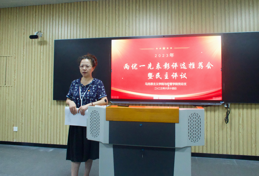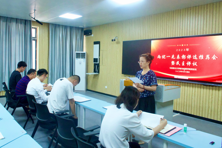 根据学校党委《关于开展2023年“先进基层党组织、优秀共产党员、优秀党务工作者”评选表彰活动的通知》精神,6月14日下午,suncitygroup太阳成集团与经济管理学院党总支组织召开“两优一先”表彰评选推荐会暨民主评议党员活动,总支书记吴玲主持会议,两个学院的全体党员教师参会。